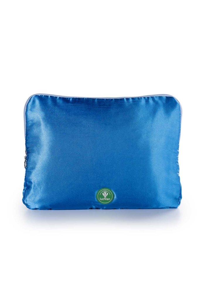 • Mavi çelik saten dış kumaşa sahip.