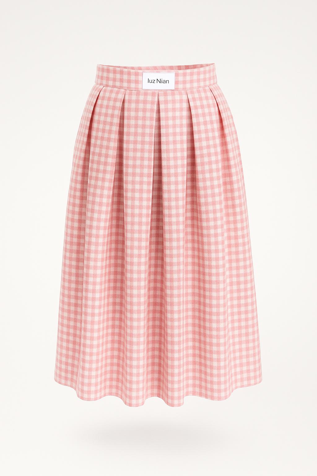 Pembe ve beyaz gingham deseniyle bu pileli etek, bahar ve yaz günleri için mükemmel bir seçim! Yüksek pamuk oranlı kumaşı sayesinde iç göstermez ve cildinize nefes aldırır. Ön kısmı şık kemer detaylı, arka kısmı ise lastikli yapısıyla rahat bir giyim sağlar. Yandan gizli fermuarı ile kolay kullanım sunar.